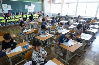 今年度第1回目の避難訓練を行いました。大きな地震が起きたという想定で、教室の机の下へ一次避難し、そのあと、校庭に二次避難をしました。時折強い風が吹きつける中でしたが、皆冷静に避難することができました。このところ日本では大きな地震が起きていませんが、万が一に備えてこれからも真剣に訓練に取り組んでいきます。
