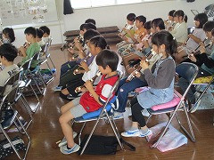 3年生が5校時に、リコーダー講習会を行いました。3年生の音楽科の学習で初めてリコーダーを使い始めます。リコーダーの種類やタンギングの仕方、指のおさえ方など、興味深く講師の先生のお話を聞いていました。